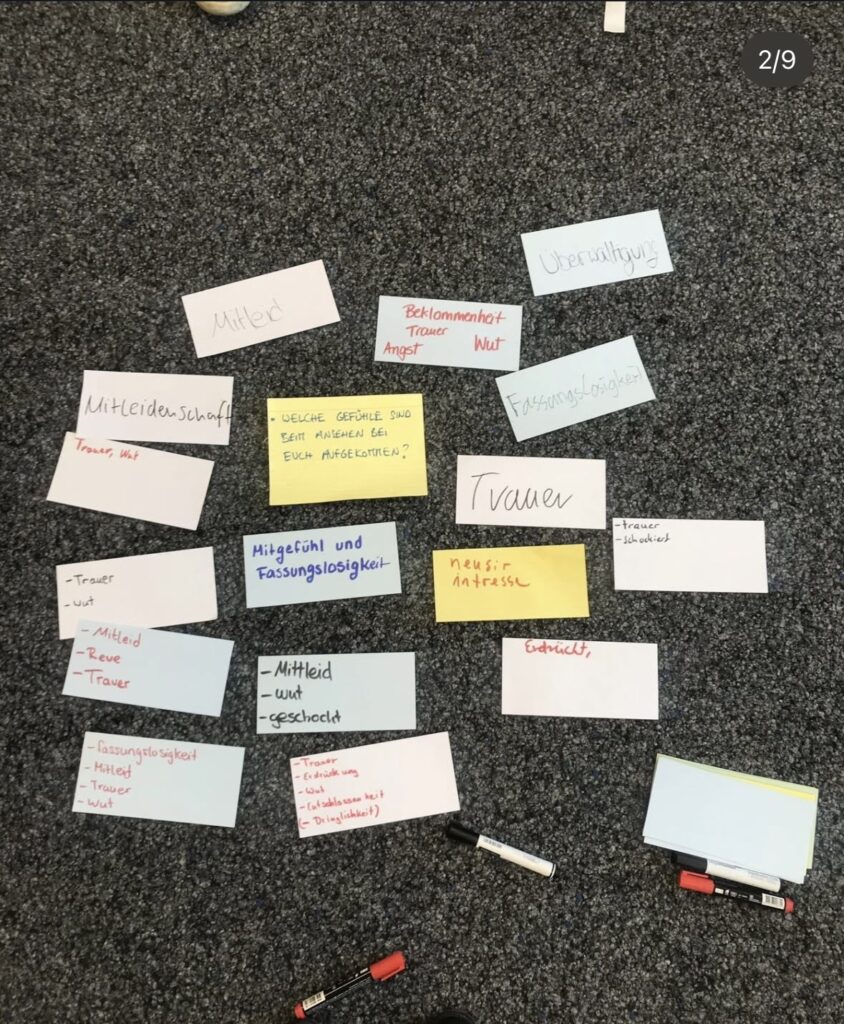 Diese Präsentationen waren nicht nur ein Höhepunkt des Workshops, sondern auch eine wertvolle Gelegenheit für die Schüler:innen, ihre Gedanken und kreativen Ansätze zur Erinnerungskultur zu teilen. Die abschließende Besprechung und Reflexion halfen uns, die Erfahrungen zu verarbeiten und die Bedeutung der Auseinandersetzung mit unserer Geschichte und deren Darstellung in der Gegenwart zu erkennen.