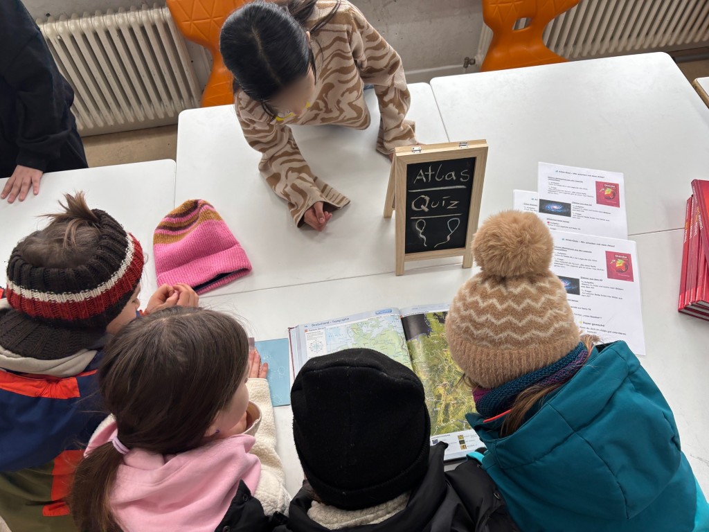 Ein besonderer Höhepunkt waren die Beiträge unserer fünften Klassen: Sie präsentierten mit viel Engagement ihre Arbeitsergebnisse und luden Kinder und Familien zu vielfältigen Mitmachangeboten ein. Von Zeitkapseln über kreative Workshops bis hin zu Atlasreisen – für alle war etwas dabei.